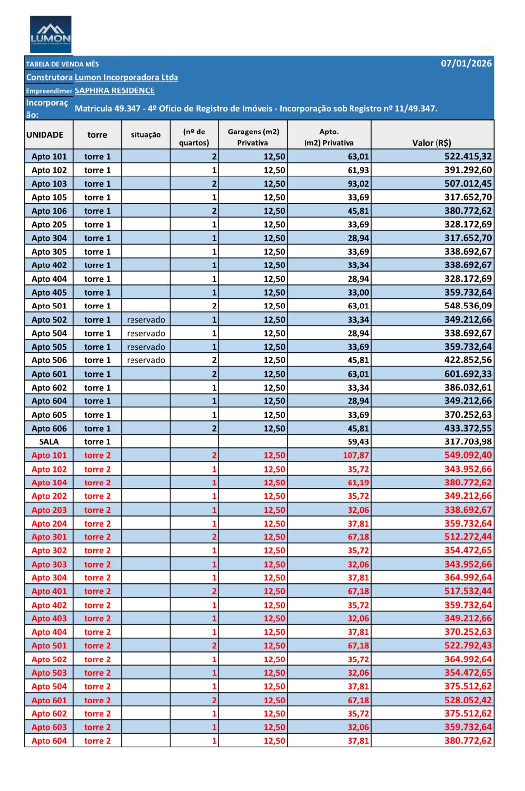 • 2 Torres modernas com elevador;